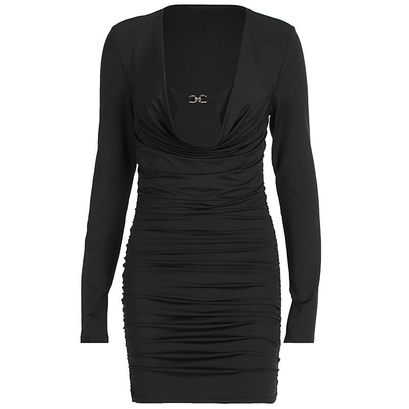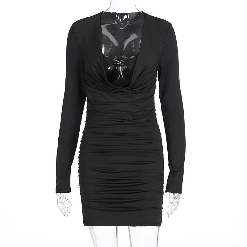 V-neck sexy long sleeved high waisted hip hugging dress
